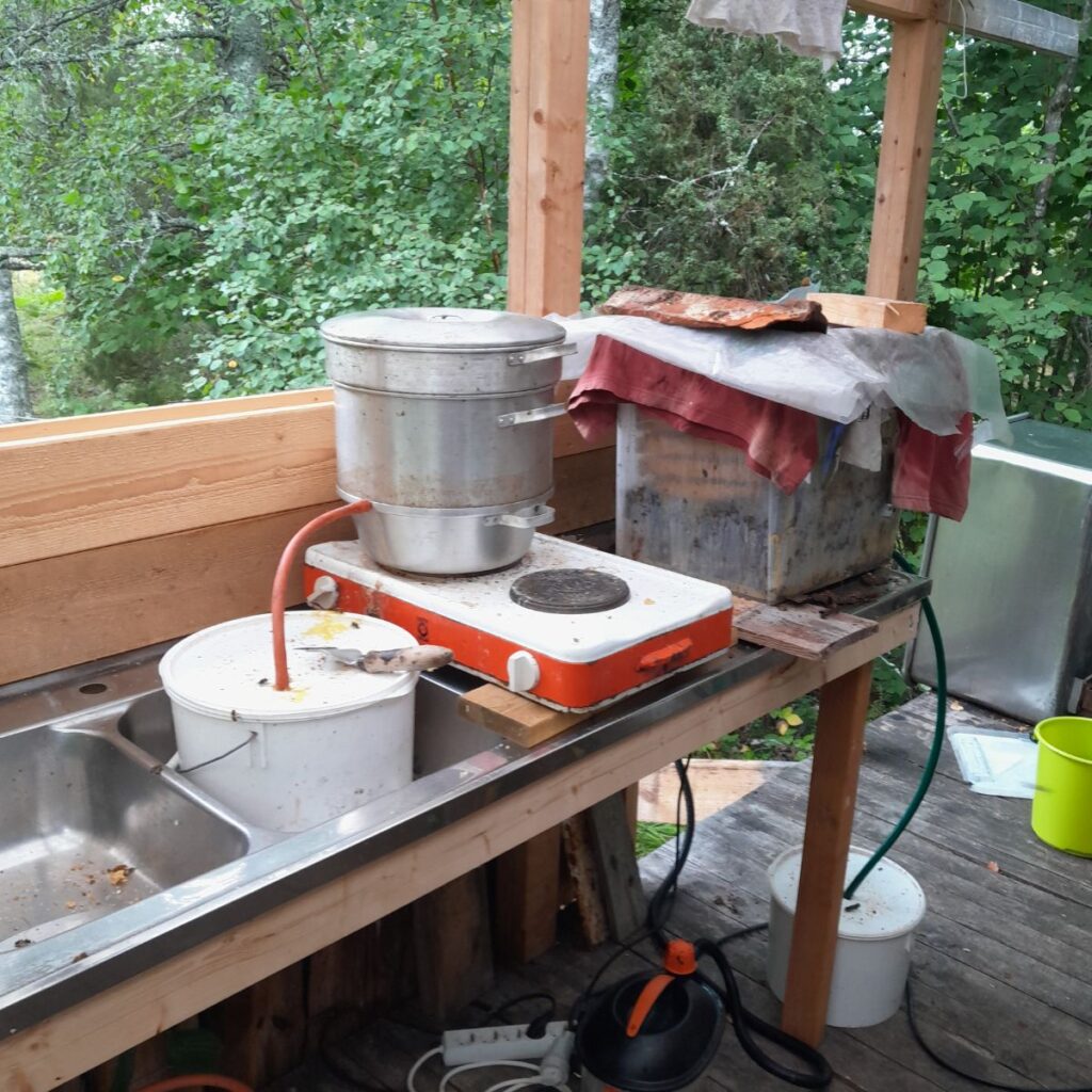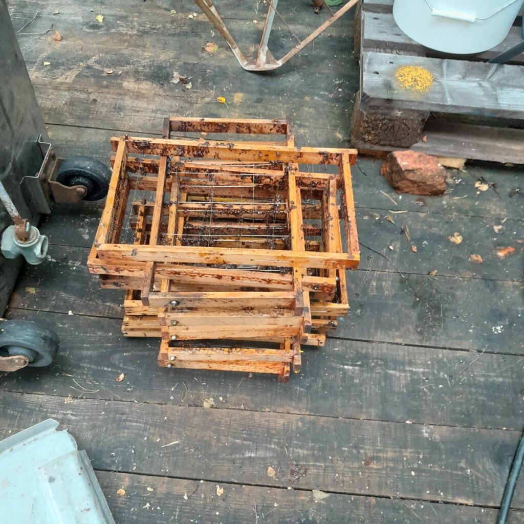 Förra veckan avslutades med vaxsmältning. Både ramar som är för gamla smältes ner och avtäckningsvax.