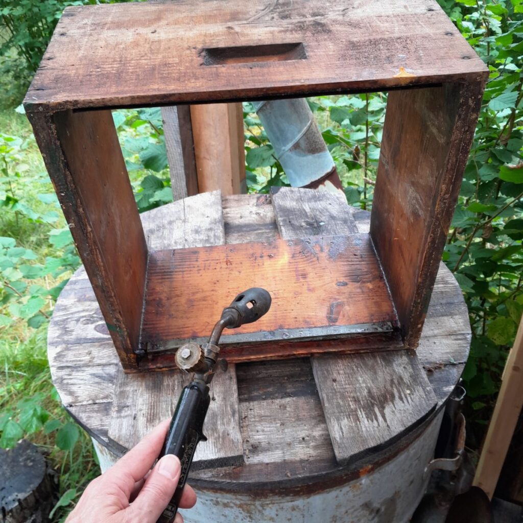 Jag passade även på att skrapa bort vax från trälådor och sommarluckor. Därefter flammas de med eld så att man dödar virus och bakterier.